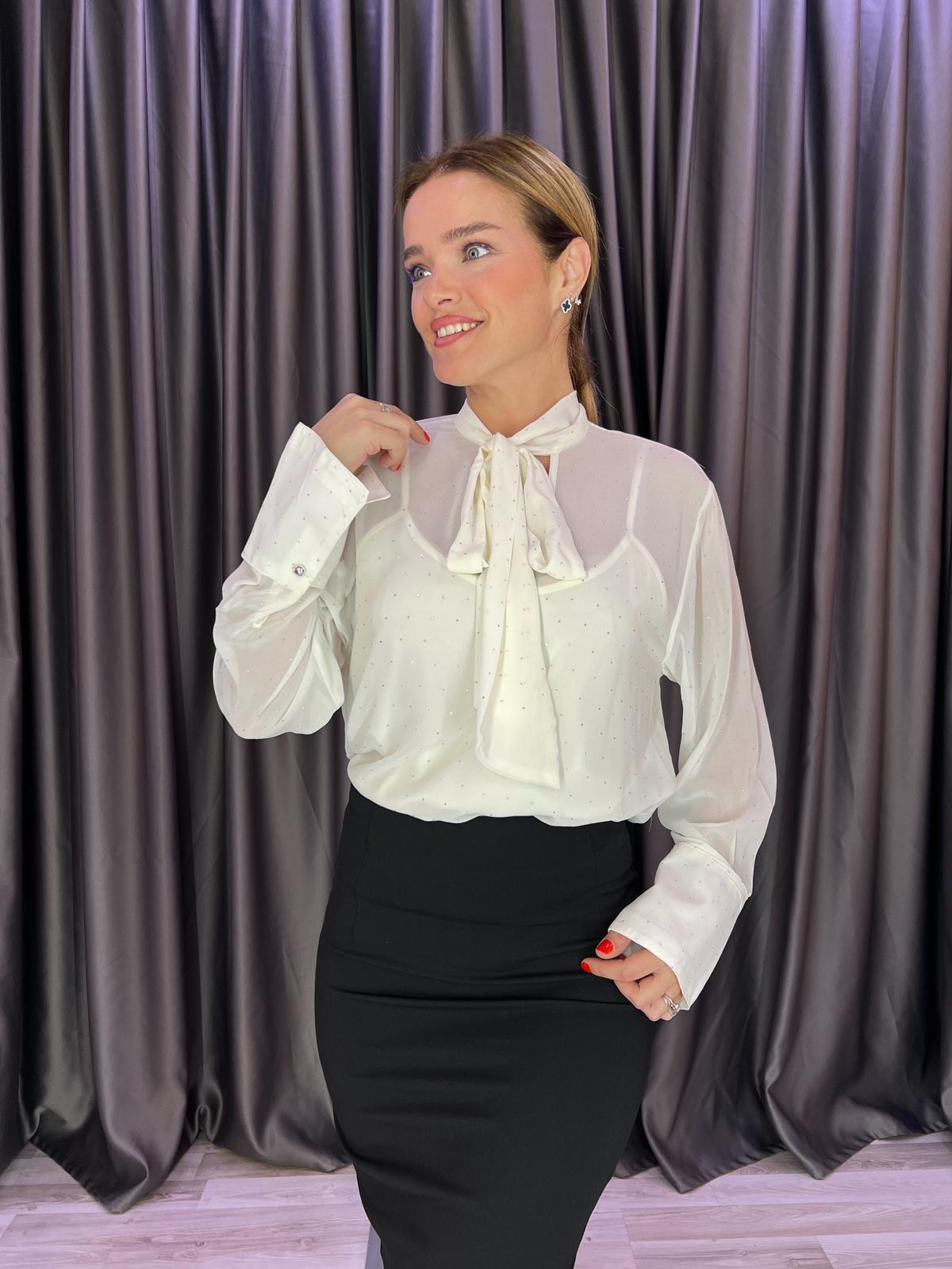 Atletli Taş Baskı Şifon Ekru Gömlek (BRC720)