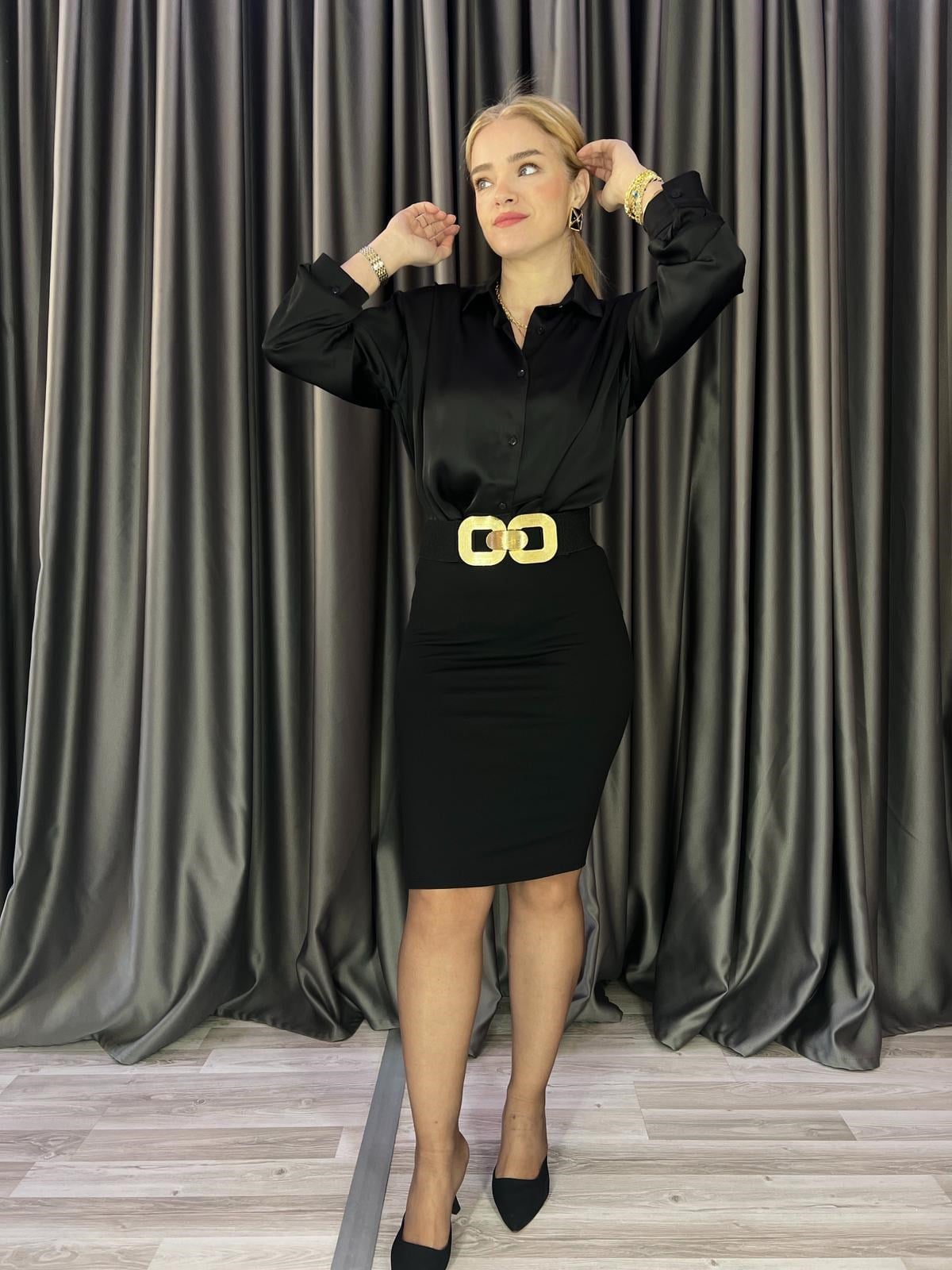Ayrs Siyah Saten Gömlek (BRC900)