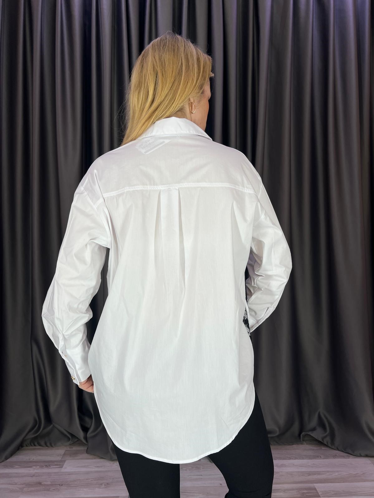 Bağlama Detaylı Bel Kısmı Dantelli Beyaz Gömlek (BRC1080)