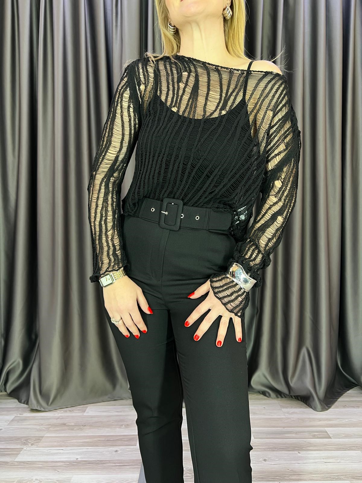 Elytra Ajurlu Siyah Triko (BRC1090)