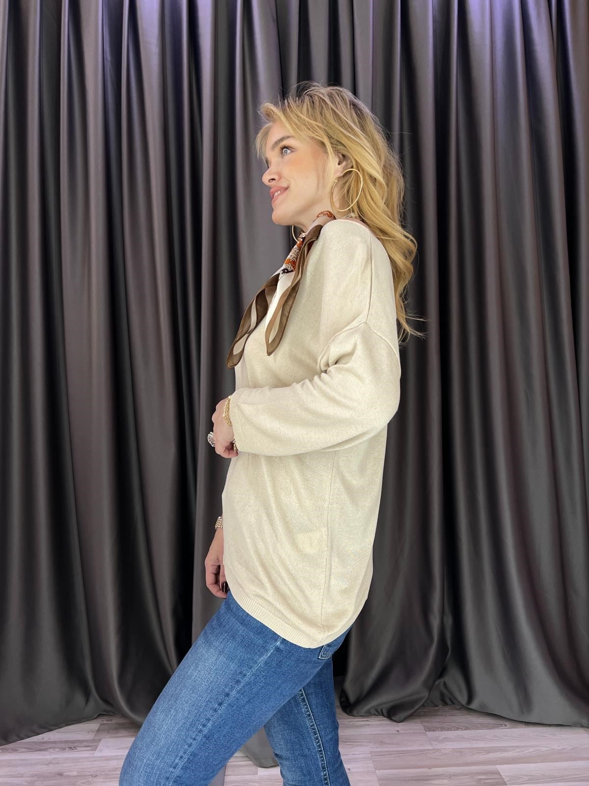 Geniş Yaka Viskon Bej Triko (BRC1106)