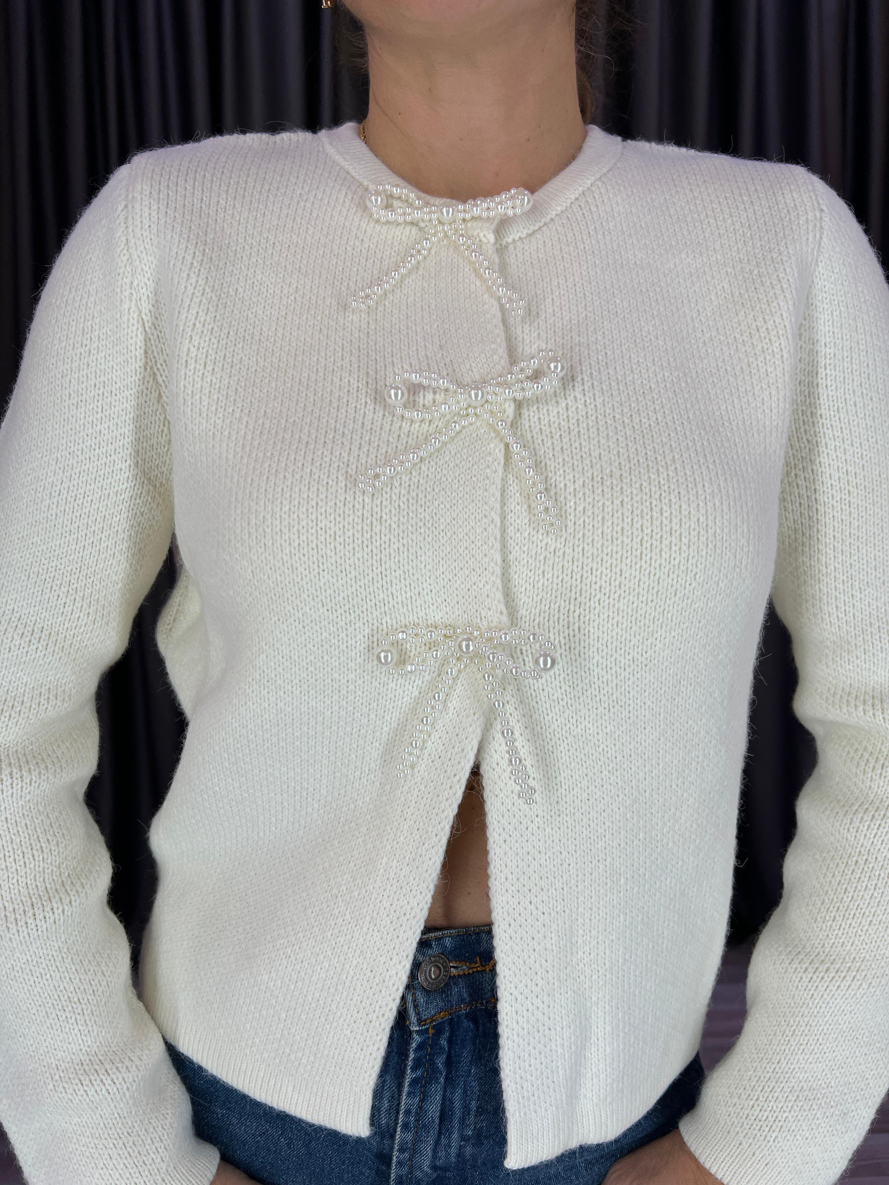 İnci Fiyonklu Ekru Dilvin Hırka (BRC767)