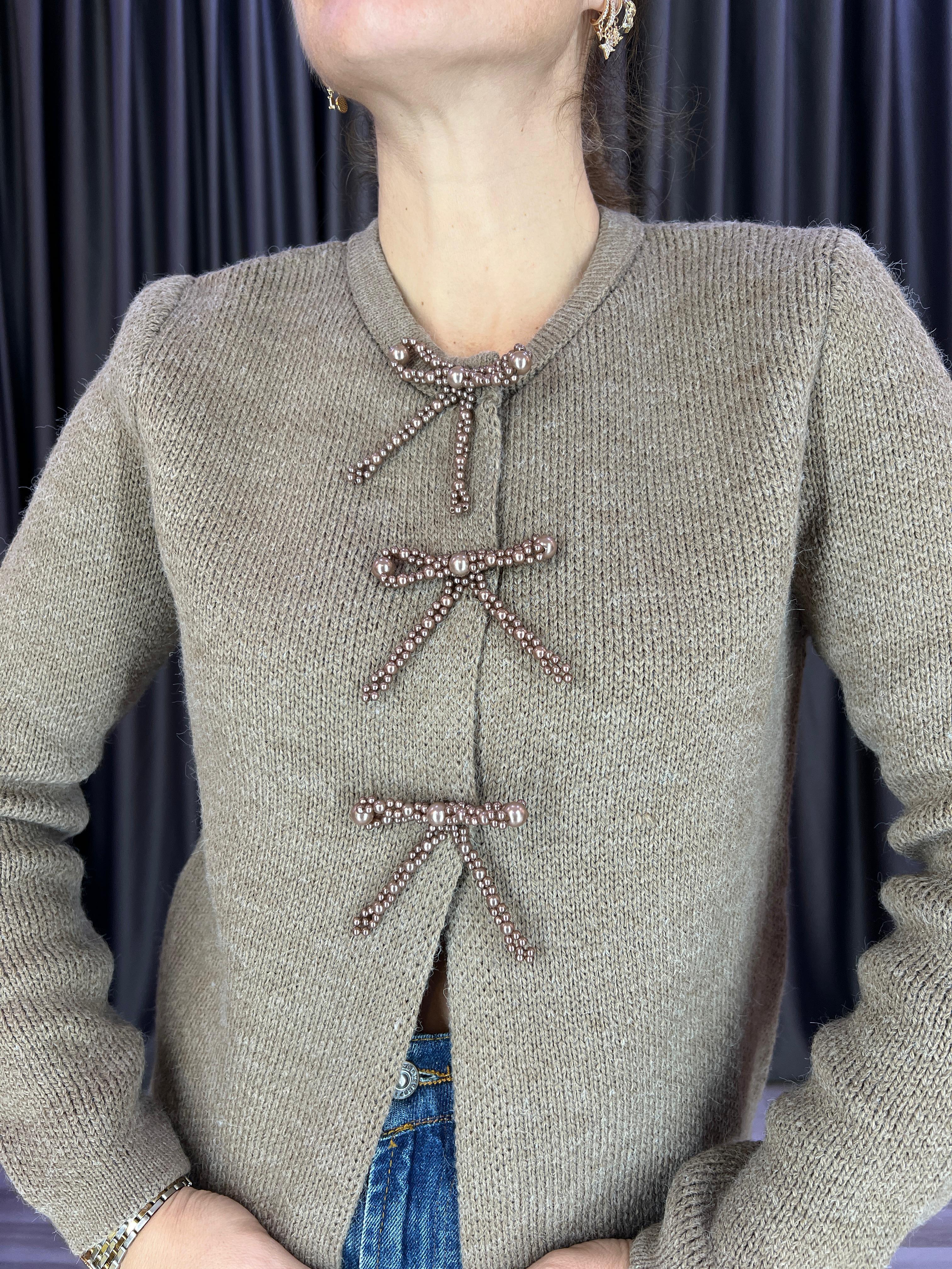 İnci Fiyonklu Vizon Dilvin Hırka (BRC762)
