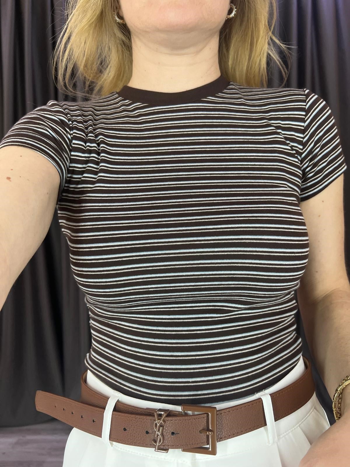 Kahve Ekru Çizgili Body (BRC1110)