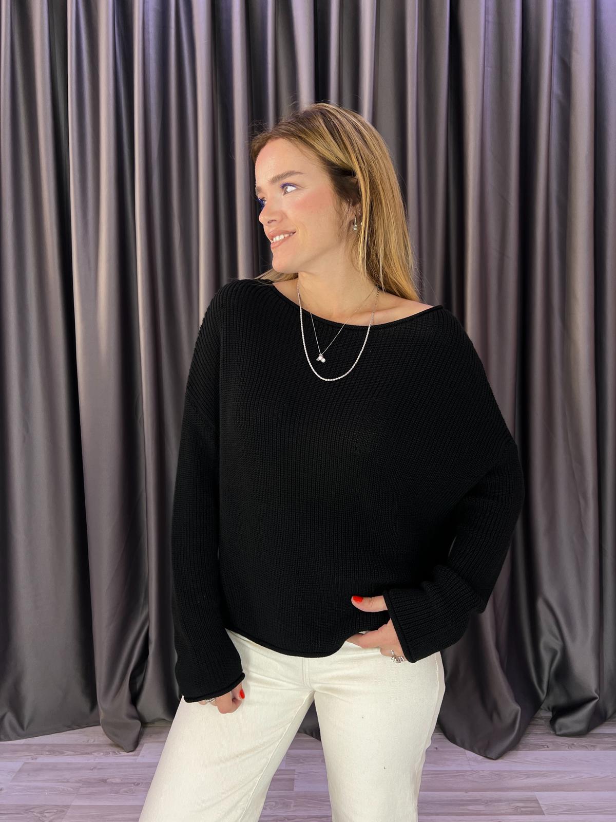 Kayık Yaka Basic Siyah Dlvn Triko (BRC732)