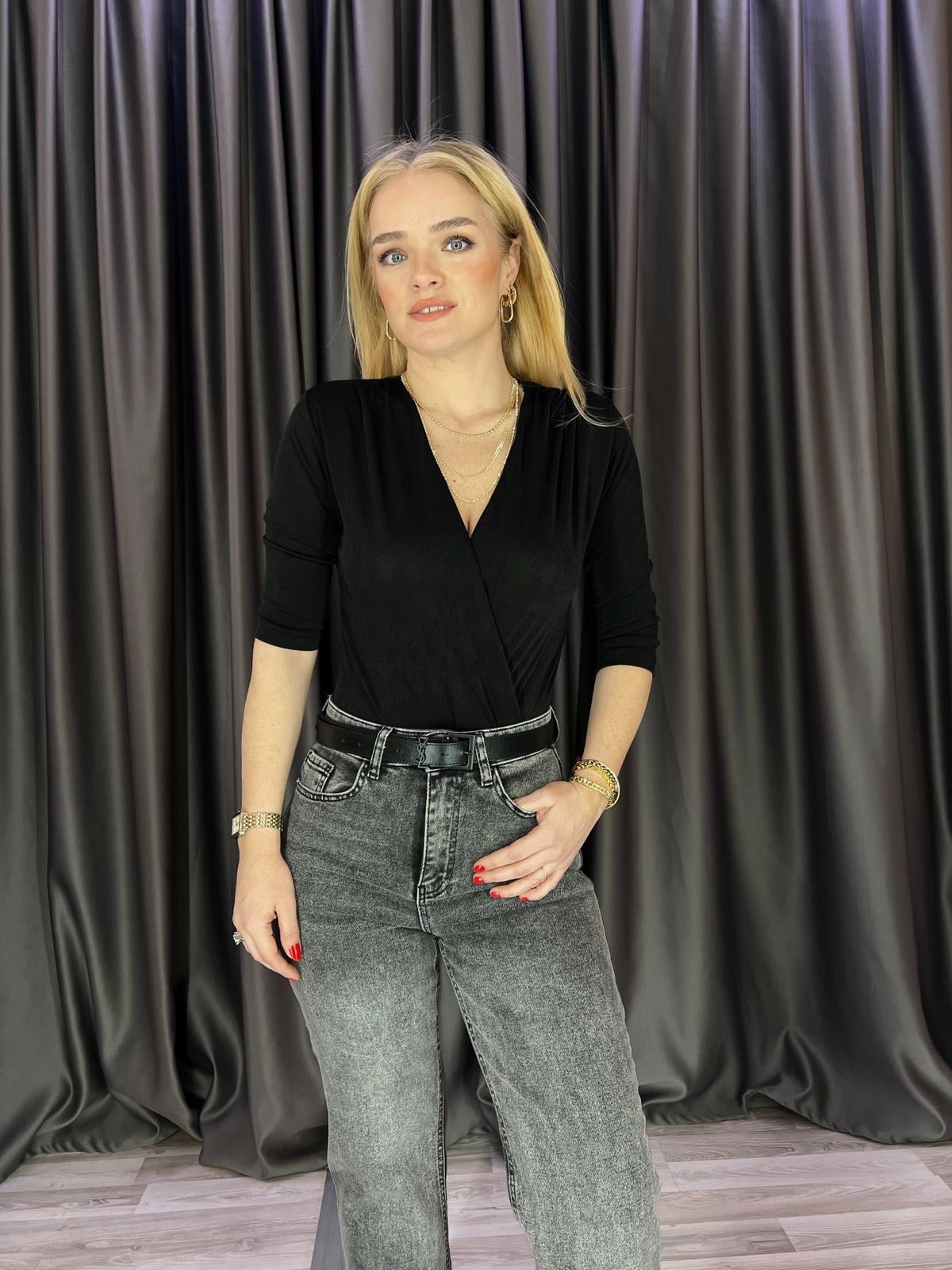 Kruvaze Buzzy Kumaş Siyah Body Suit Siyah (BRC1078)