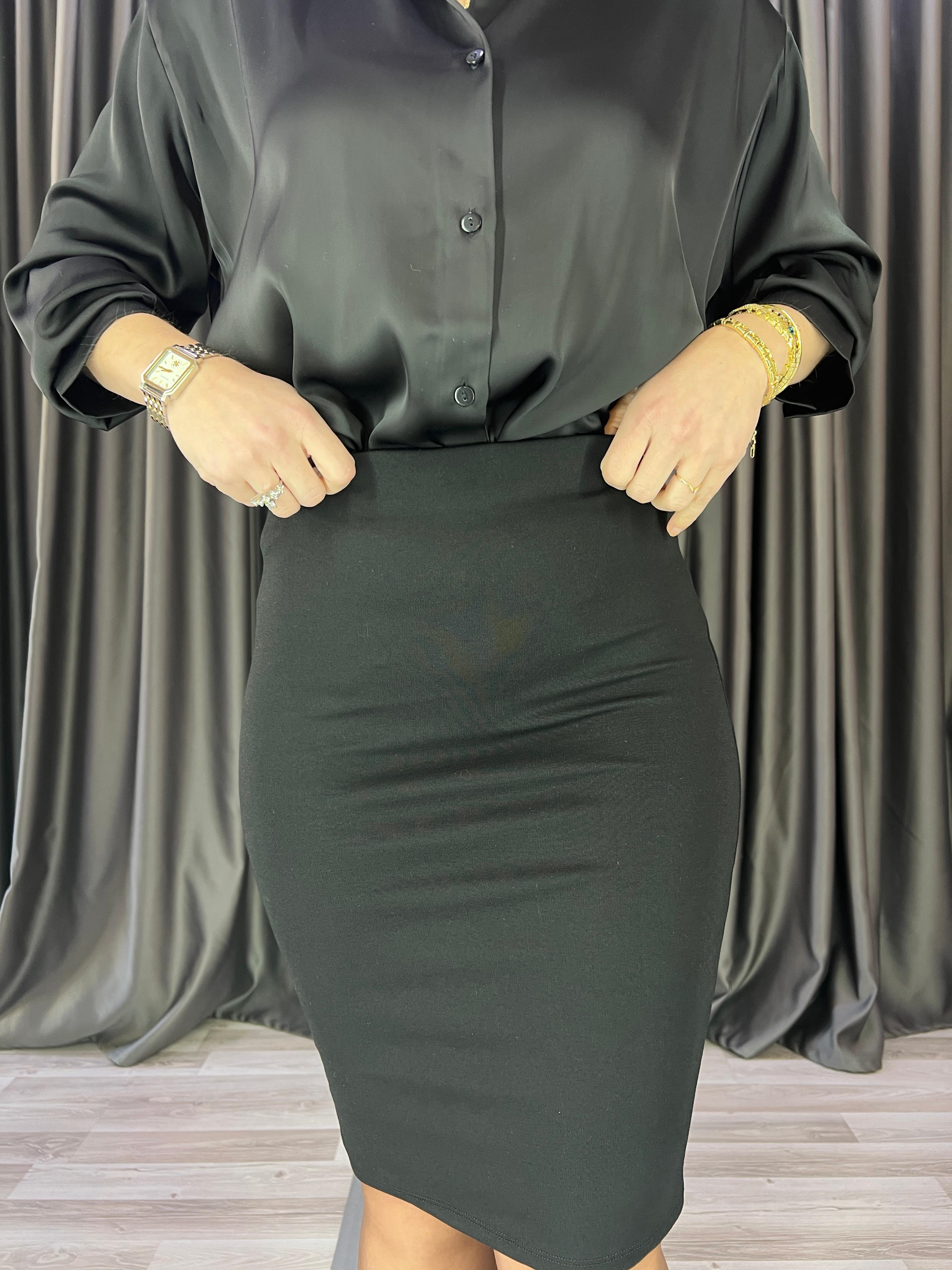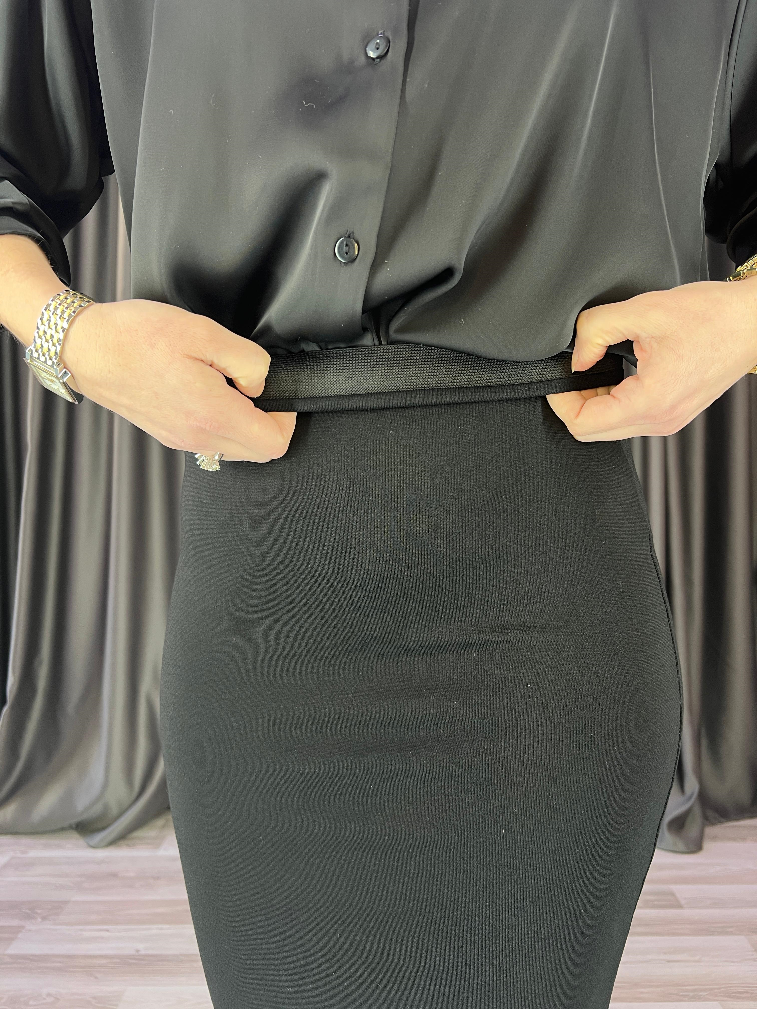 Midi Boy Çelik Kumaş Siyah Kalem Etek (BRC1066)