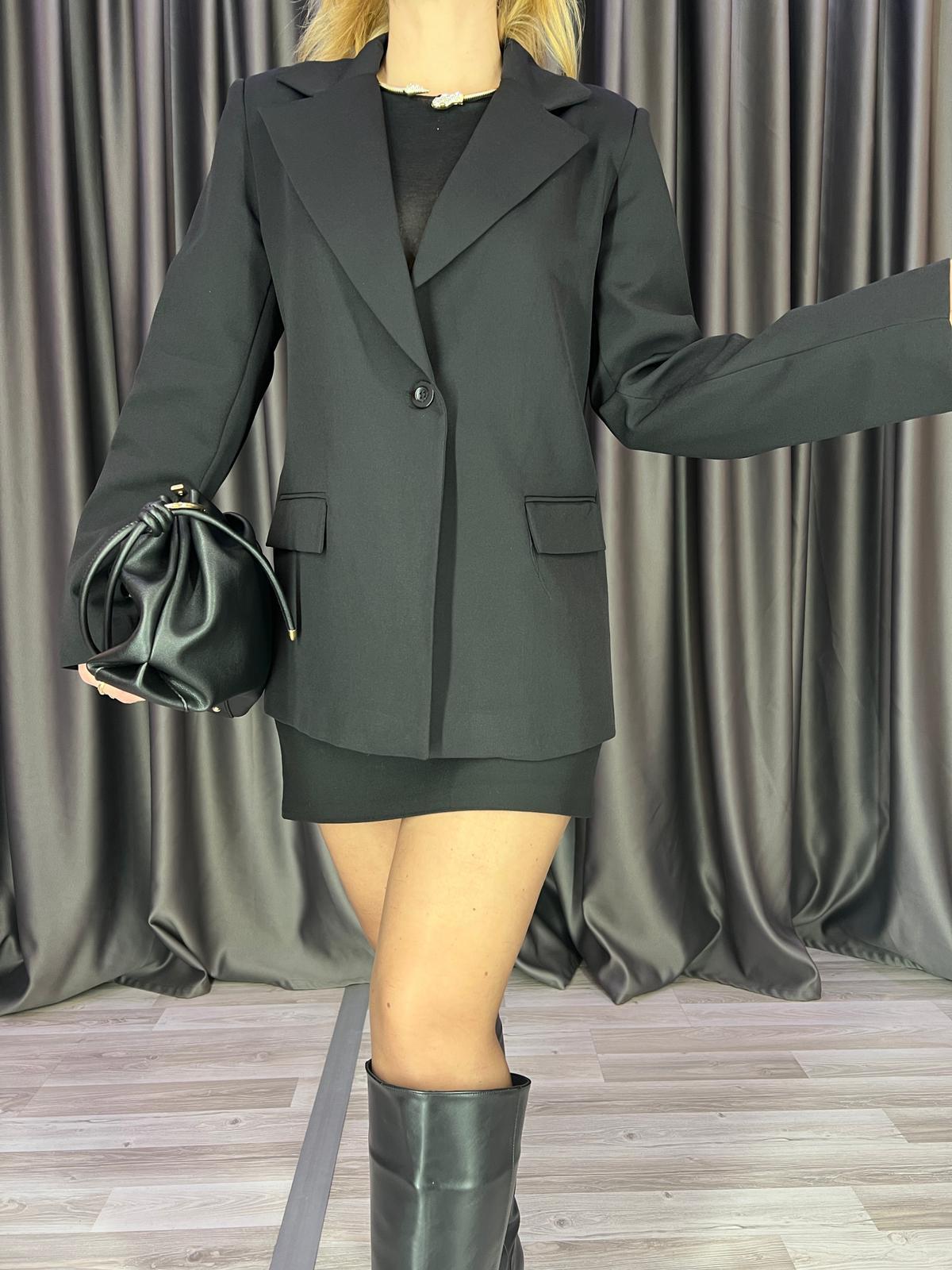 Tek Düğme Siyah Blazer Ceket (BRC1062)