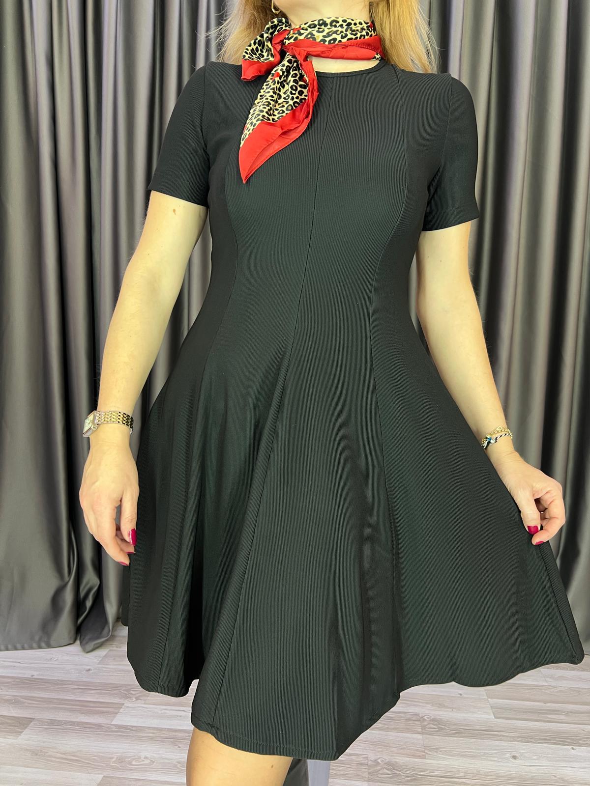 Zr Model Kısa Kol Ottoman Kumaş Siyah Elbise (908)